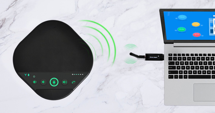 - Wireless 2.4G transmission, without any cable connection to Video Conferencing terminal, PC..